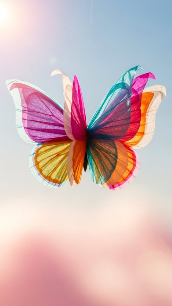 Tissue paper butterflies are light, airy, and delicate, closely resembling the fragile nature of real butterfly wings. This craft often involves layering or twisting tissue paper to create soft, textured wings.