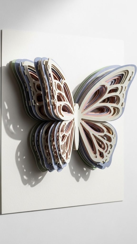 Layered butterflies are visually striking and look especially beautiful when displayed on walls, shadow boxes, or greeting cards. The layering technique allows light and shadow to interact with the wings, enhancing the overall effect.
