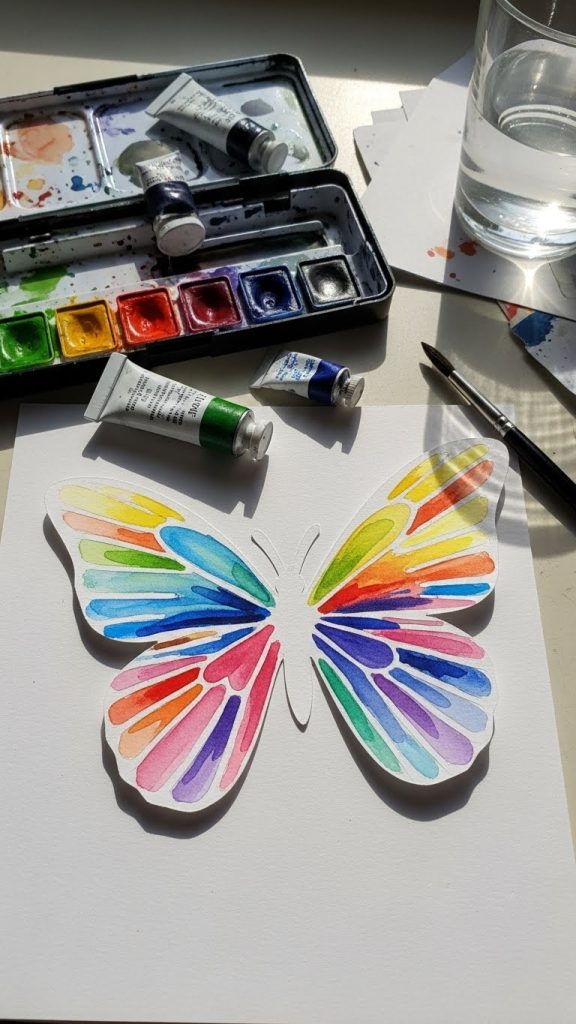 Painted paper butterflies combine paper crafting with fine art. In this approach, butterflies are first cut from plain paper and then painted using watercolors, acrylics, or inks.