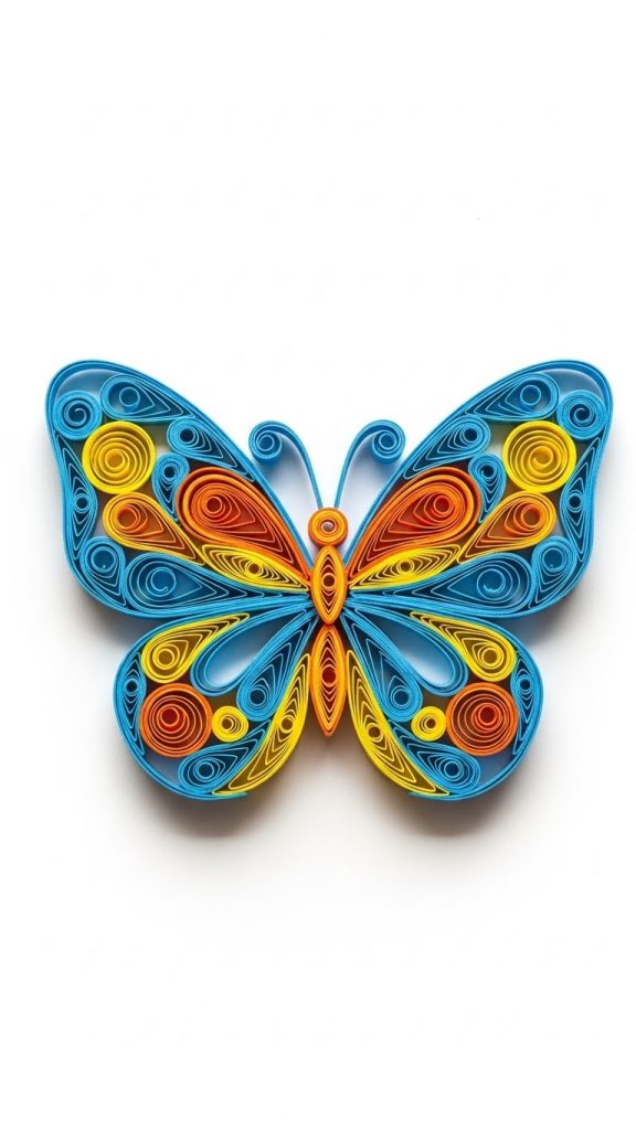 Quilled butterflies often feature symmetrical patterns, with each wing carefully designed using coils, teardrops, and scrolls. The body is usually formed from tightly rolled strips.